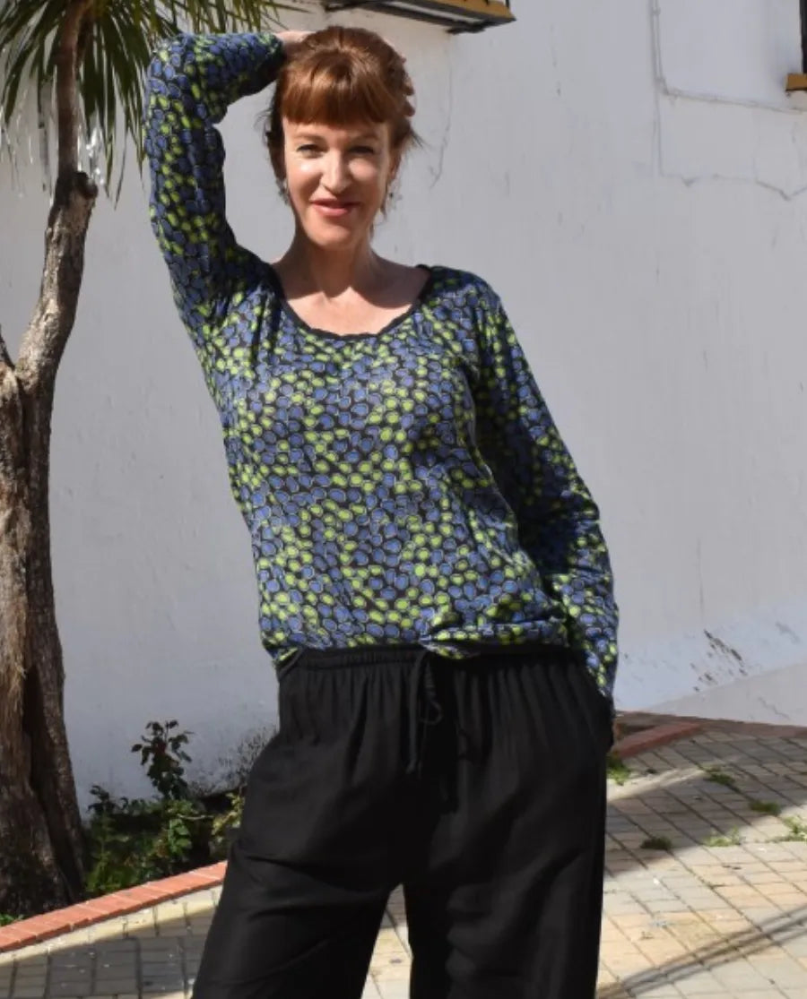 Camisa boho Cuello barco. Su diseño boho resulta muy combinable con cualquier prenda básica