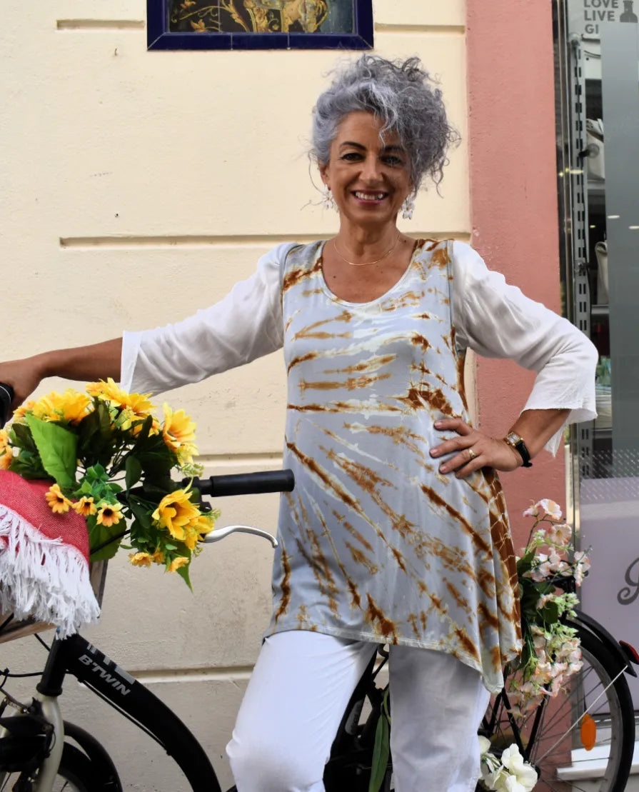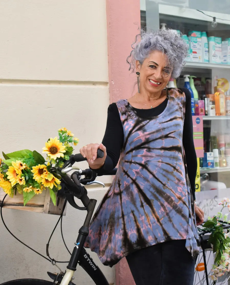 Descubre la magia de la Moda Pro Edad con nuestra Camiseta Tie-Dye de maga Sisa y corte evasé y picos,