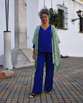 Explora la elegancia y la atemporalidad de nuestro Kimono Poncho de Seda y Talla Grande, una prenda que no conoce límites de edad ni estilo y estiliza tu figura.