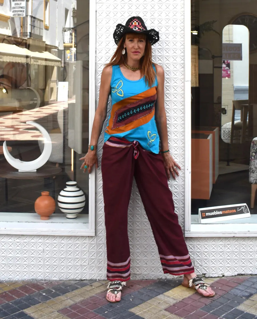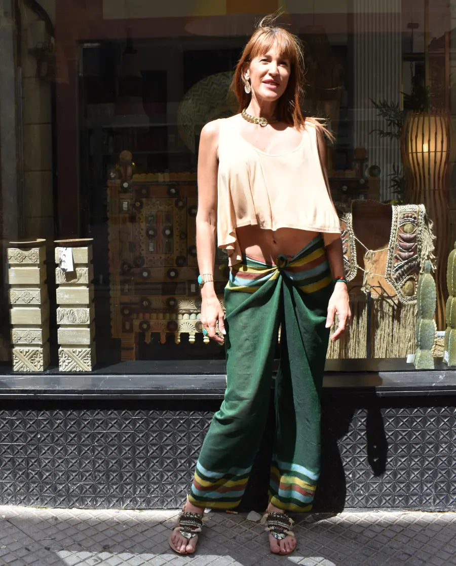 Descubre la versatilidad y el estilo único de nuestro pantalón Nudo con bonita cenefa de fino algodón.