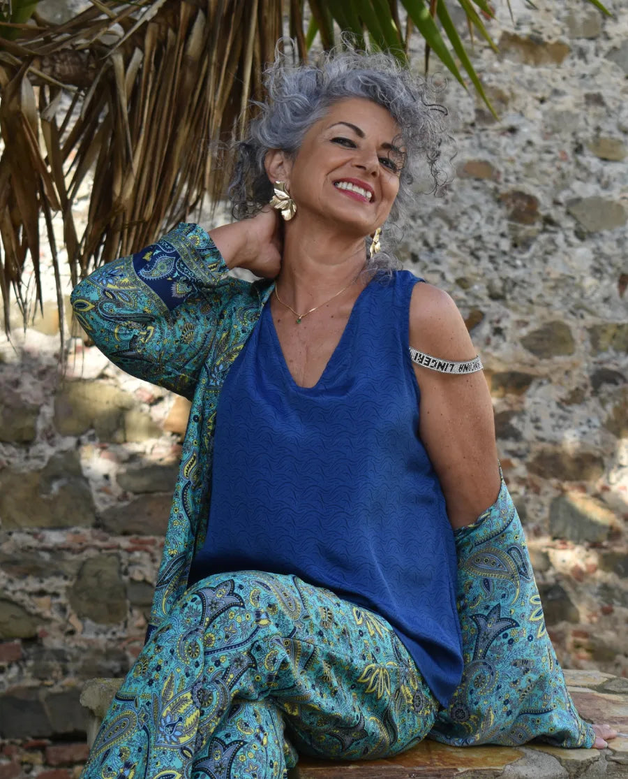 Añade nuestros elegantes Tops de Seda en tonos Azules a tu guardarropa, y descubre cómo esta elegante prenda encaja a la perfección con cualquier edad y estilo.