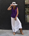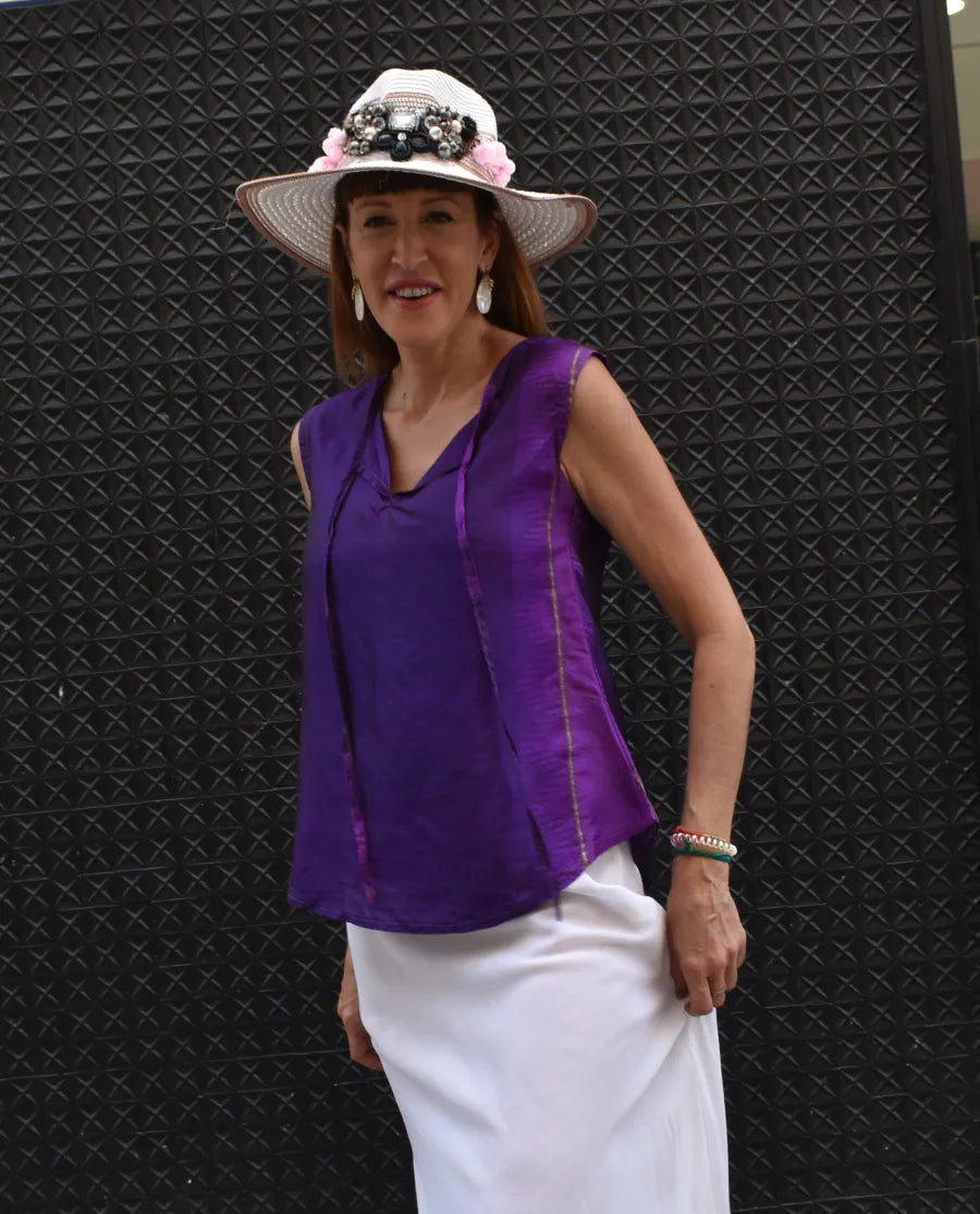 Combínalo con pantalones o una falda al bies para lograr un look vintage y moderno a la vez. Descubre la perfecta combinación de moda y comodidad con nuestro "Top de Seda Básica".