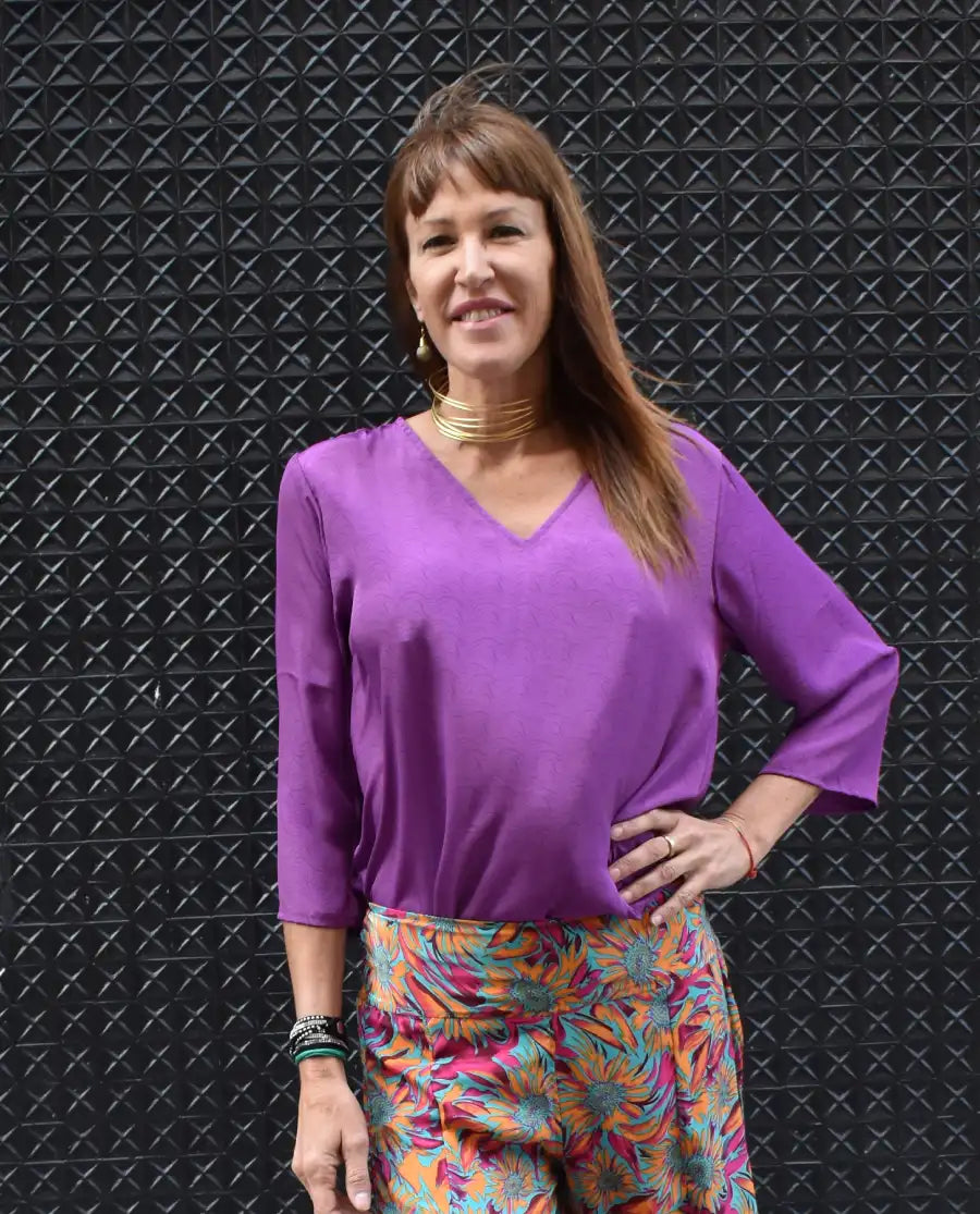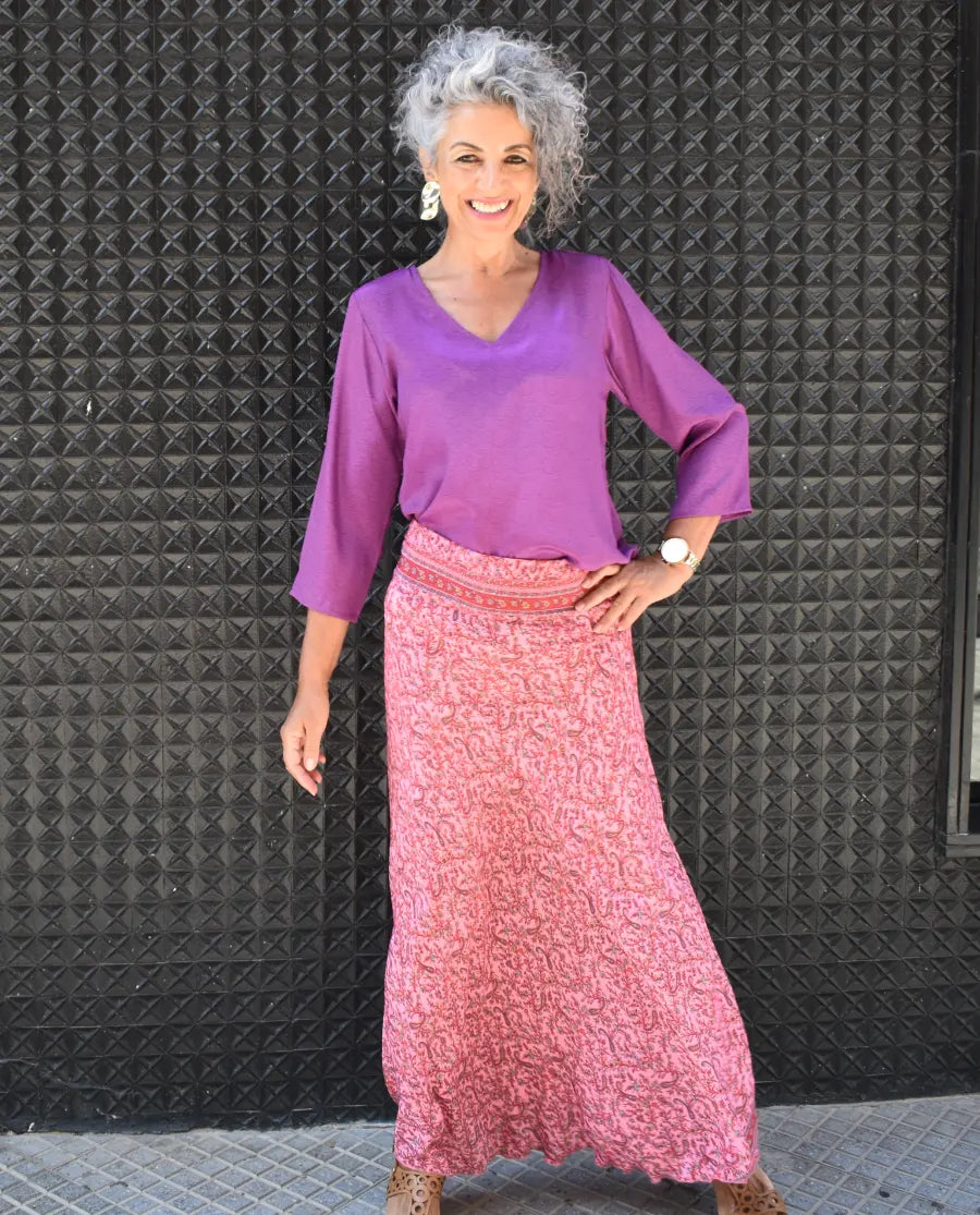 - Consejos y Trucos: Te sugerimos Combinar tu top de seda básica con seda estampada, como con los pantalones estampados y faldas estampadas y te encantará!